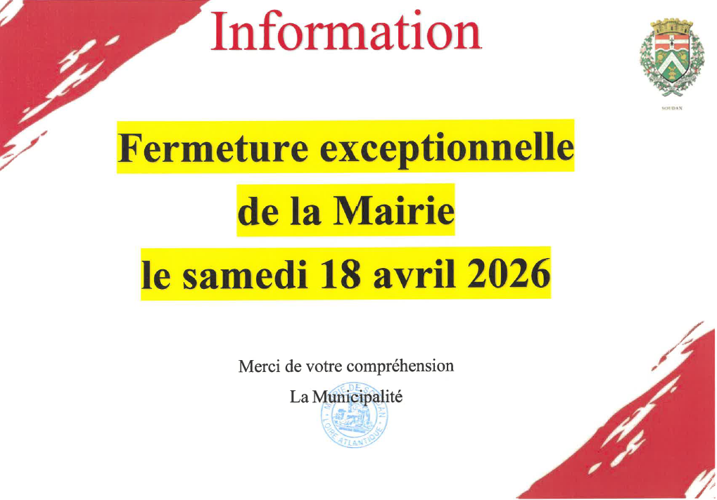 Fermeture exceptionnelle de la Mairie le samedi 18 avril 2026