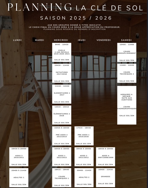 Cours hebdomadaires :