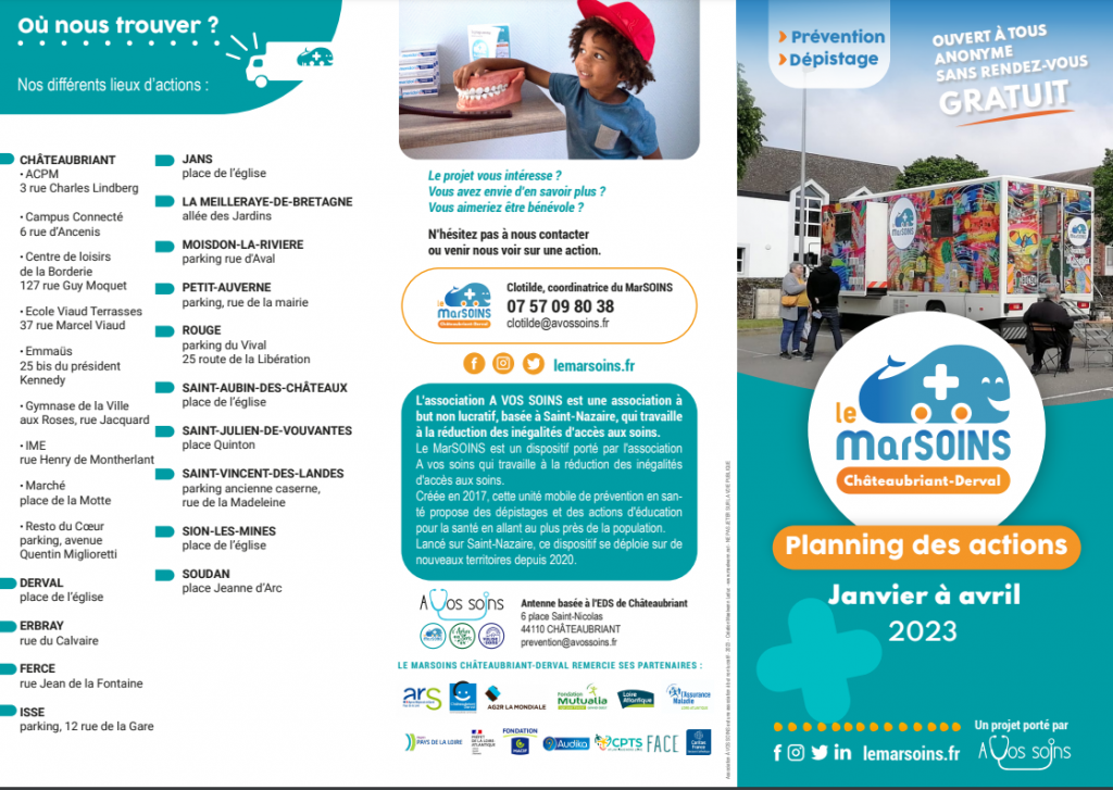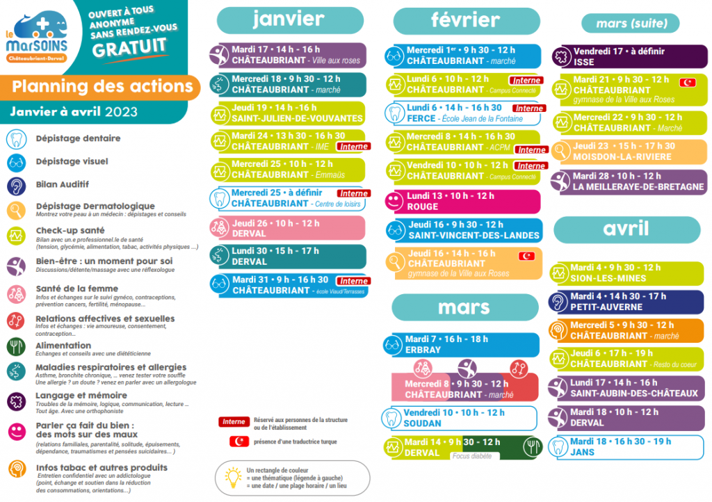 Planning des actions du MarSOINS CHATEAUBRIANT-DERVAL de janvier 2023 à avril 2023