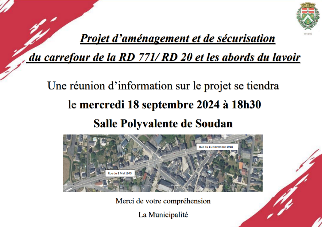 Une réunion d’information sur le projet se tiendra le mercredi 18 septembre 2024 à 18h30 à la Salle Polyvalente de SOUDAN